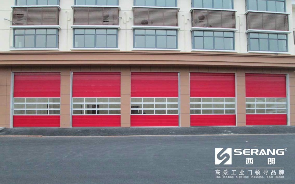 西朗工业门公司为上海消防大队生产、安装的红色消防提升门,外观漂亮,还具有三行透明视窗,便于观察室内外情况,电机、控制箱全部采用进口品牌,使用寿命长,安全、方便。